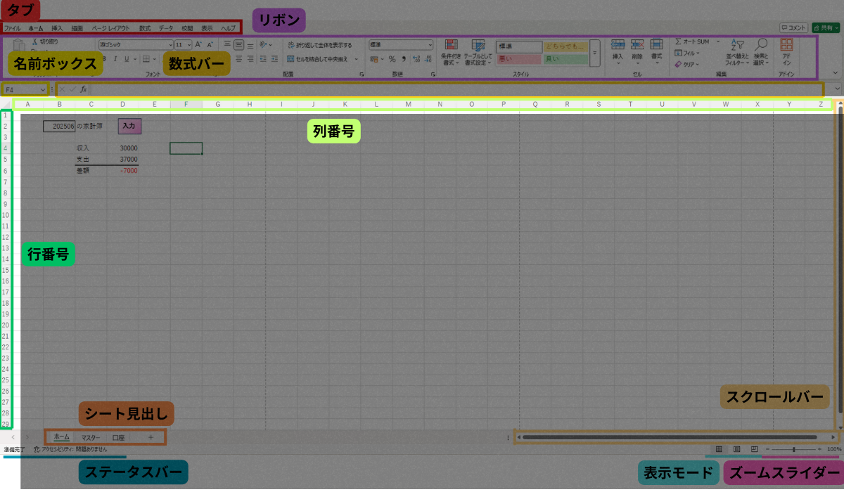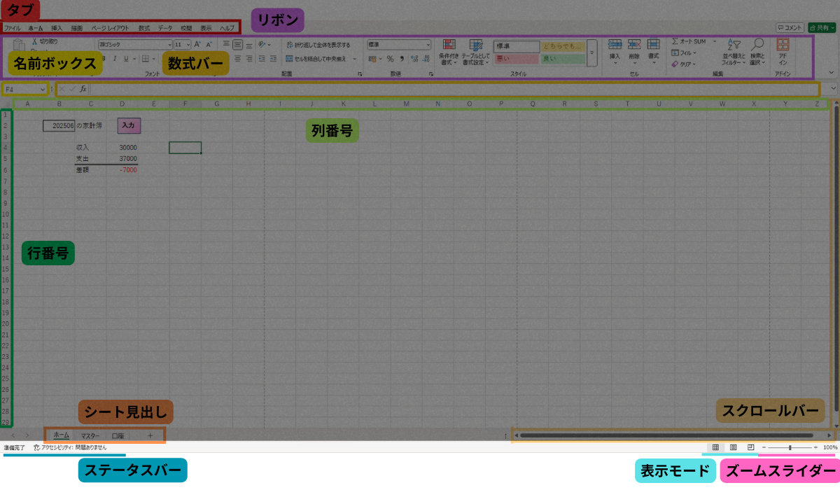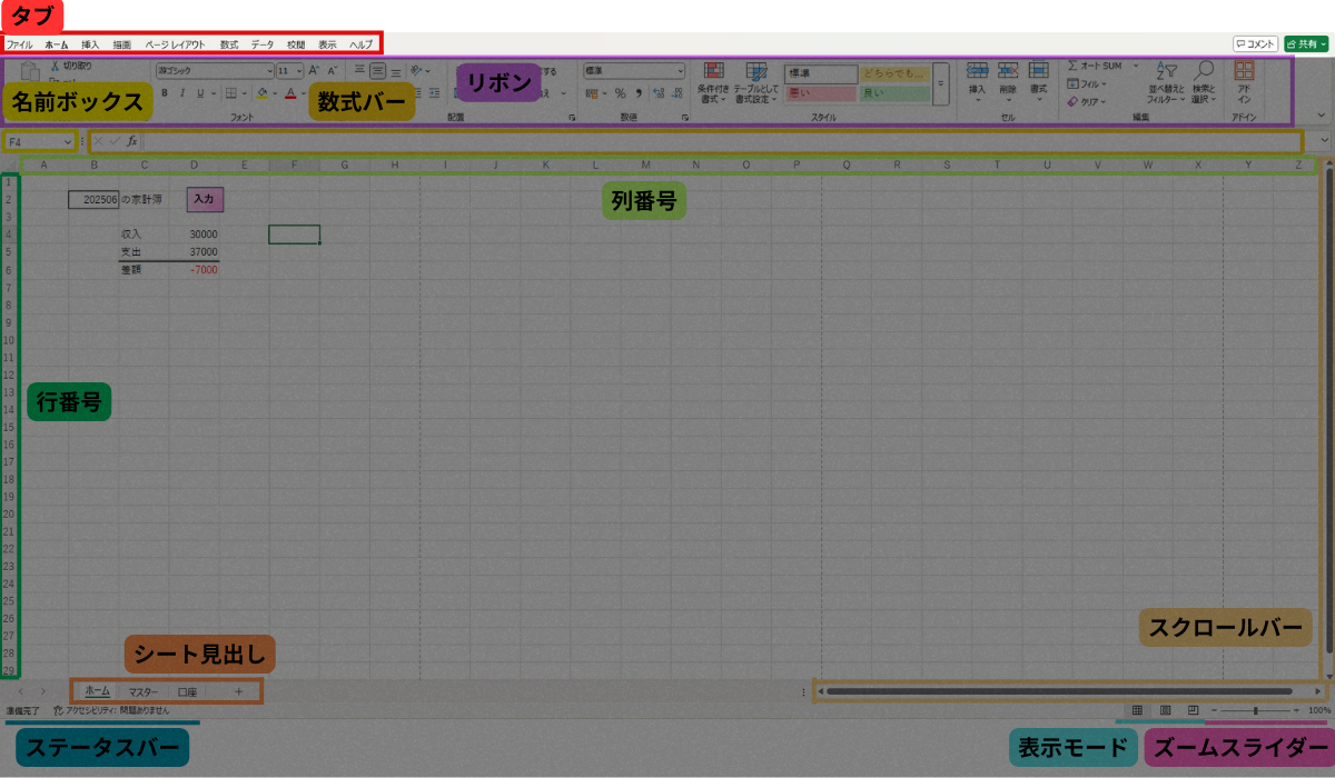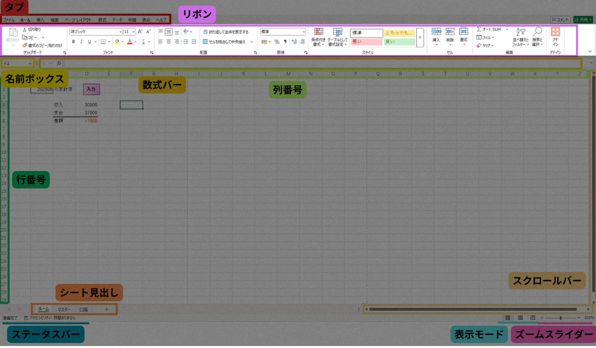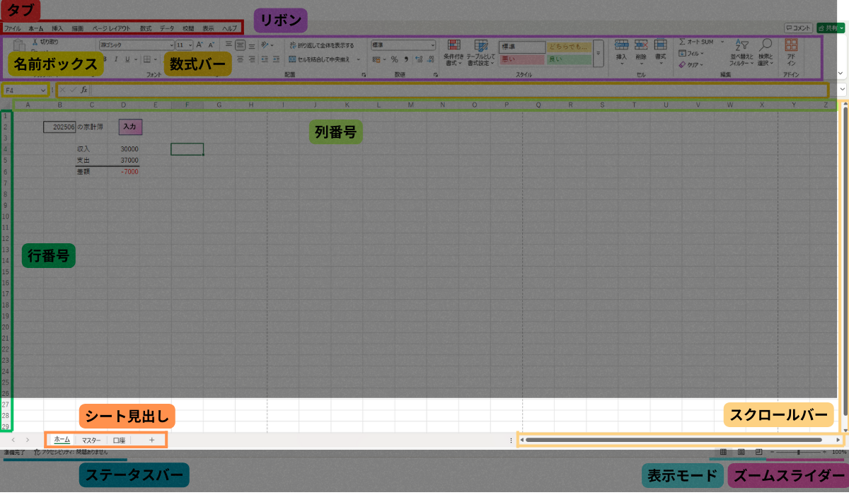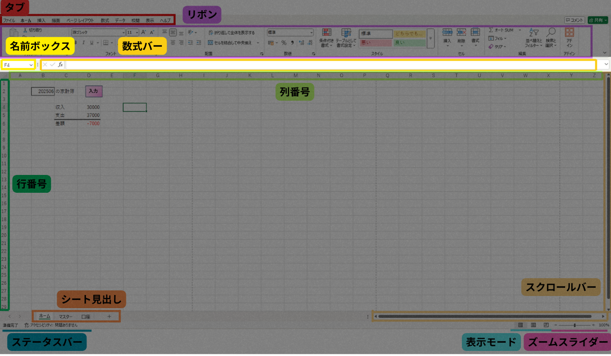 この記事を読めば、エクセルの画面構成と各役割が大まかに分かるようになります!
