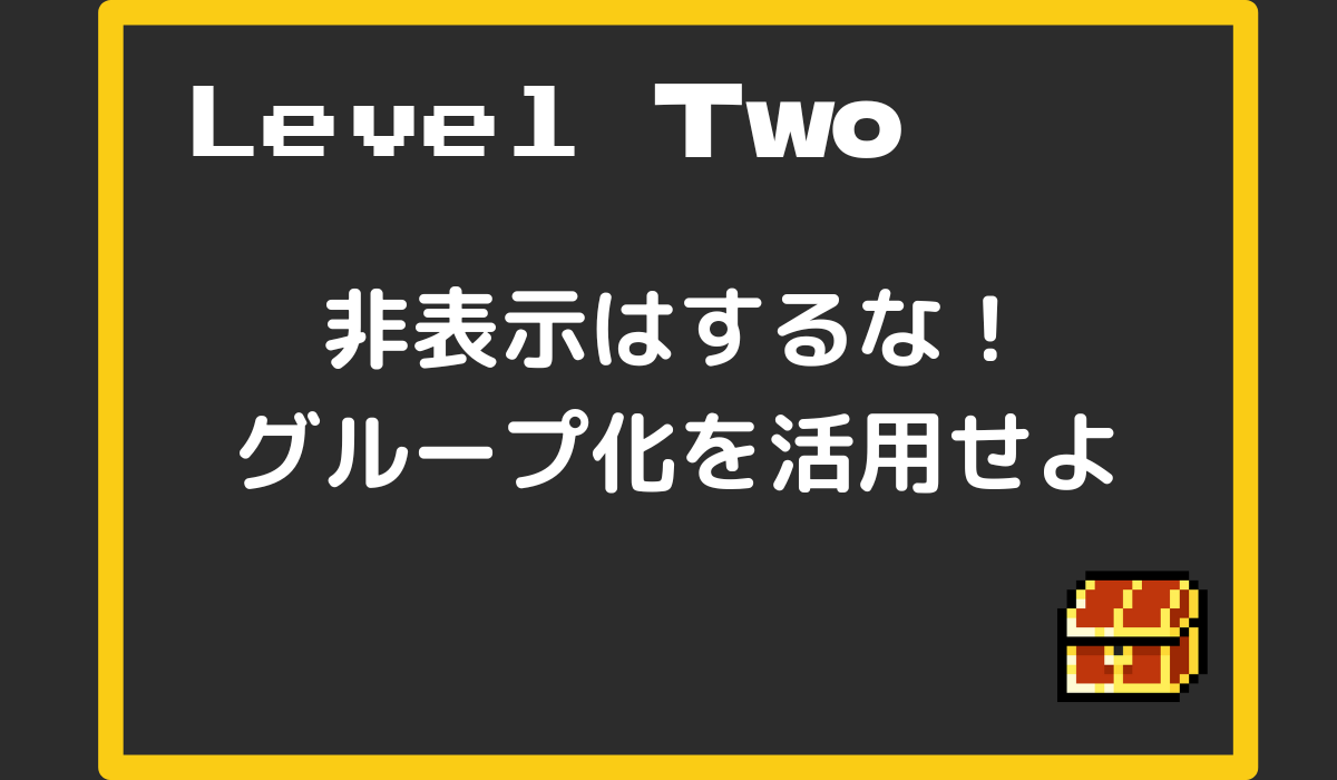 グループ化は上記のようなブックで非表示をする際に活用するべきです。
