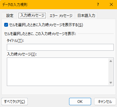 当然、毎回メッセージが表示されるのは煩わしいので、入力時のメッセージを設定しないことも可能です。