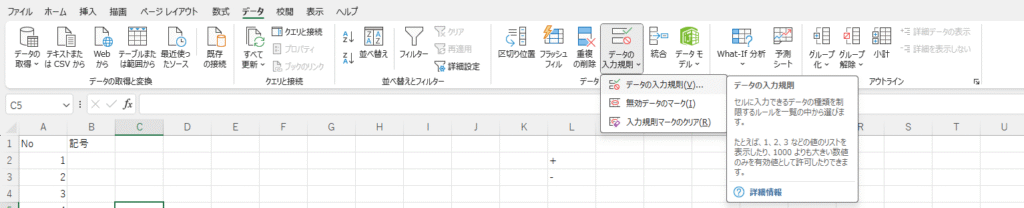 つまり、入力規則を設定したセルでは、入力できる内容が制限されます。