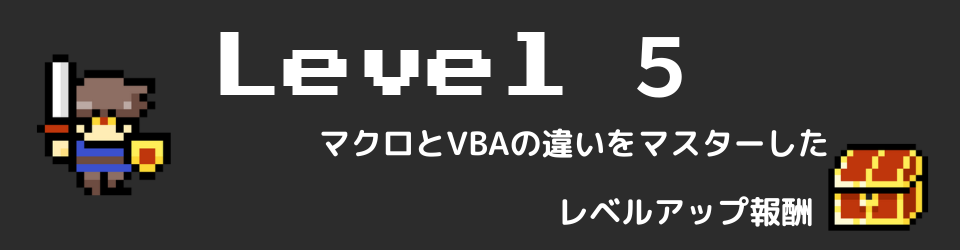 - VBA = マクロを作るための「言葉」(=レシピや調理道具)