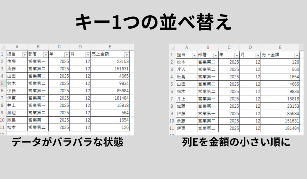 2. 基本:1つのキーで並べ替える(昇順・降順)