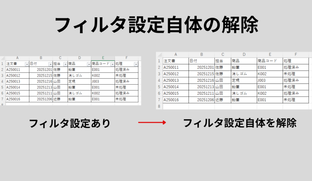 2. フィルタの解除と設定の解除(2つの方法)