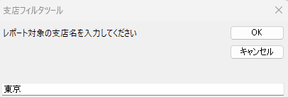 targetBranch = InputBox("レポート対象の支店名を入力してください。", "支店フィルタツール", "東京")